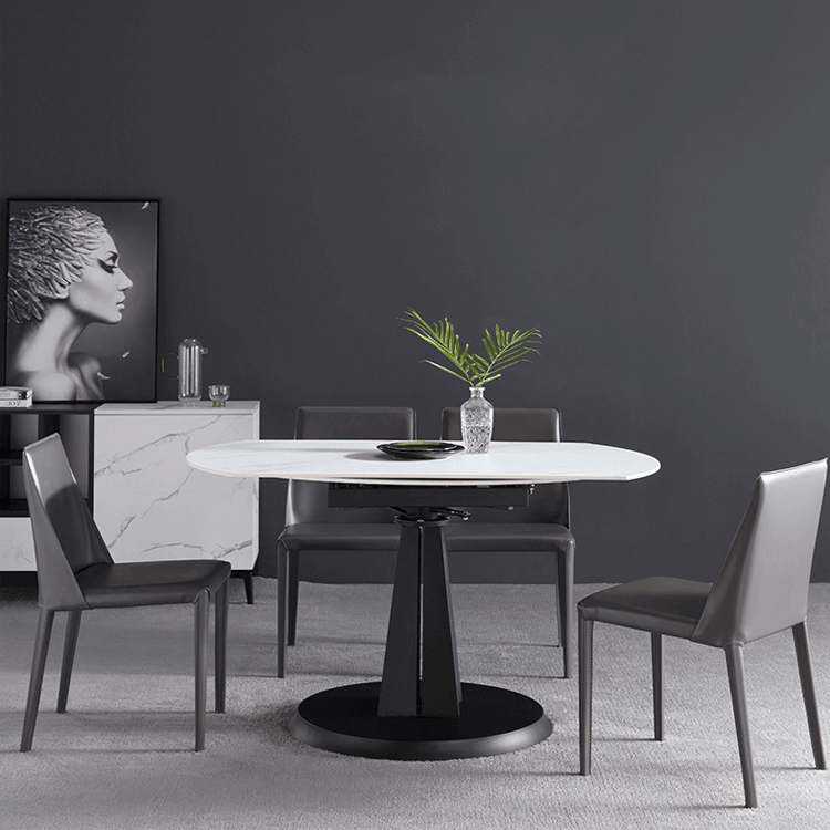 This modern and contemporary extendable oval marble-style rock table is a perfect addition to your home. With its extendable design, you will be able to fit a lot of people around this high-quality table. Made from high-quality Italian marble, this table will last for generations.